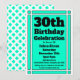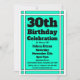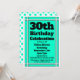 Send out invitations to a 30th birthday celebration with this Teal 30th Birthday Invitation. It can be customised with your personal information.