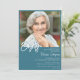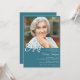 Photo modern minimalist teal and white 80th birthday party invitation for a fun birthday party. Age can be changed. This invitation is simple and elegant, adult milestone birthday invitation for men and women. The teal and white background colour can be changed to any colour of your choice using the design tool.