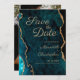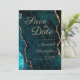 Elegant save the date card with teal aqua marble agate with gold glitter wedding photo save the date card. Couple photo on the back.