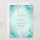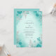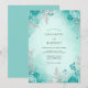 This ethereal design features a soft watercolor wash in shades of teal and aqua. Delicate teal roses and berries are accented by muted tan foliage, creating a serene and breezy atmosphere. Perfect for a coastal or seaside event, the artwork offers a sophisticated and romantic aesthetic.