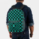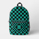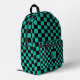 Teal and Black Chequerboard Pattern Monogram Printed Backpack