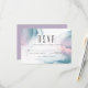 Wedding RSVP | Stunning flowing fluid wet alcohol ink design in soft pastel colours of teal, blush with a hint of lilac where the colours have mixed. An avant garde appeal with the offset modern text for your wedding details all in an easy to customise wedding template.