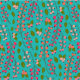 Teal and Coral Berry Pattern Fabric