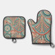 Teal and Coral Nouveau Flow Oven Mitt & Pot Holder Set