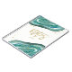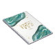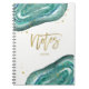 This elegant, modern notebook features watercolor teal geode stones, with faux gold typography and splashes, on a white background.