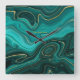 Teal and Gold Agate Personalised Square Wall Clock