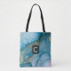 Teal and Gold Alcohol Ink Liquid Art Monogrammed Tote Bag