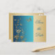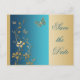 This teal blue and gold flowers and butterflies save the date post card matches the wedding invitation shown below. If you require any other matching items in this design, please email your request to niteowlstudio@gmail.com.