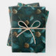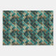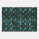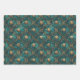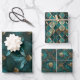 Teal and Gold Floral Pattern Wrapping Paper Sheet