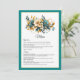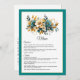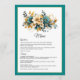 Teal and Gold Floral Wedding Menu