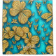 Teal and Gold Flowers Personalised Name Shower Curtain