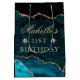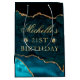 Teal and Gold Glitter Marble Agate Birthday Medium Gift Bag