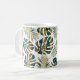 Teal and gold patterned tropical leaves coffee mug