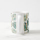 Teal and gold patterned tropical leaves brush paint strokes coffee mug. It showcases patterned tropical leaves with brush strokes in teal blue and gold and confetti. You can customise it and add your images or graphics.