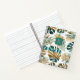 Modern tropical leaves patterned with teal and gold brush strokes and monogram notebook featuring monstera and palm leaves patterned with brush strokes in teal blue and gold and confetti.