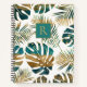 Teal and gold patterned tropical leaves, monogram notebook
