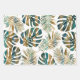 Teal and gold patterned tropical leaves wrapping paper sheet