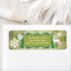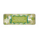 Holiday return address labels with an off white, teal, and green tree design background, snowflakes, a deer silhouette, and a teal and green frame where you can easily add your name and address to customise.