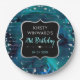 Teal and Iridescent Glitter Letters Birthday Paper Plate