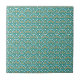 An art deco style geometric pattern designed with alternating circles with a floral pattern within . The fish scale inspired modern geometric pattern in teal and khaki looks very stylish and trendy.