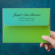 Beautiful teal blue and lime green pre-addressed envelopes.