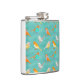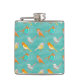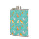 Teal and Orange Colourful Birds Pattern Turquoise Hip Flask
