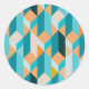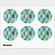 Teal And Orange Shapes Pattern Classic Round Sticker
