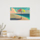 Teal and Peach Beach, Mountain and Umbrella Poster