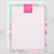 NewParkLane - Elegant letterhead, with a modern, colourful teal and pink (unicorn colours) marble pattern, and a hot pink square frame for your monogram.