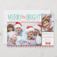 Merry and Bright Holiday Photo Card. Teal Blue and Red. Add your own photo.