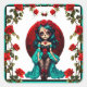 Teal and Red Roses Sugar Skulls Square Sticker