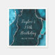 This elegant and glamourous birthday napkin features a teal blue agate marble background with faux silver glitter accents. The text combines handwritten script and modern sans serif fonts for a classy and sophisticated look. This will be perfect for autumn fall and winter birthday parties.