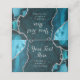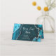 This elegant and glamourous wedding place card features a teal blue agate marble background with faux silver glitter accents. The text combines handwritten script and modern sans serif fonts for a classy and sophisticated look. This will be perfect for autumn fall and winter weddings.
