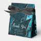 This elegant and glamourous wedding thank you favour bag features a teal blue agate marble background with faux silver glitter accents. The text combines handwritten script and modern sans serif fonts for a classy and sophisticated look. This will be perfect for autumn fall and winter weddings.