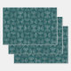 Teal and Silver Art Deco Fan Pattern Wrapping Paper Sheet