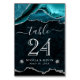Teal and Silver Faux Glitter Agate Wedding Table Number