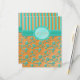 Teal and Tangerine Floral Stripe R.S.V.P. Card