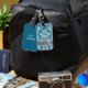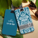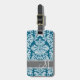 Teal and White Chalkboard Damask Pattern Luggage Tag