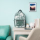 Elegant teal and white backpack done in a French Toile pattern, on the front, with solid teal accent. Personalise the custom name, to suit your needs. Great for school, work, travel and more.
