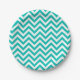Teal and White Large Chevron ZigZag Pattern Paper Plate