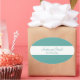 A beautifully personalised sticker in teal and white. Perfect for wedding announcements and save the dates.