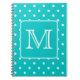 Teal and White Polka Dot Pattern. Custom Monogram. Notebook