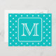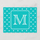 Teal and White Polka Dot Pattern. Custom Monogram. Postcard