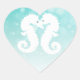 Teal and White Seahorses Kissing Heart Sticker