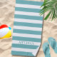Teal And White Striped Name Cabana Stripe Beach Towel