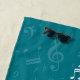 A striking musical design featuring a large treble clef created with small music notes in white on a teal background. There is a subtle pattern of music notes in the background. Customise the text with the name of the music lover or musician.