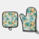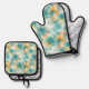 Teal and Yellow Flowers Alcohol Ink Illustration Oven Mitt & Pot Holder Set