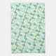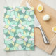 Kitchen towel with a teal, white and yellow Penrose tiling pattern.