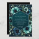 This design features a rich palette of deep teal and ocean blues, accented by lighter teal blooms resembling anemones. Lush, dark green foliage surrounds these flowers, creating a dramatic and sophisticated mood. It evokes a sense of enchanting, artistic elegance.