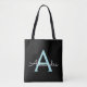 Teal Aqua Blue Girly Script Monogram Name Modern Tote Bag